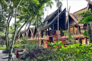 Its bold and modern architecture is what makes this resort so unique. The resort’s design includes all the ecological zones of Vommuli. This means it features lagoons, beaches, jungles, and coastal areas.