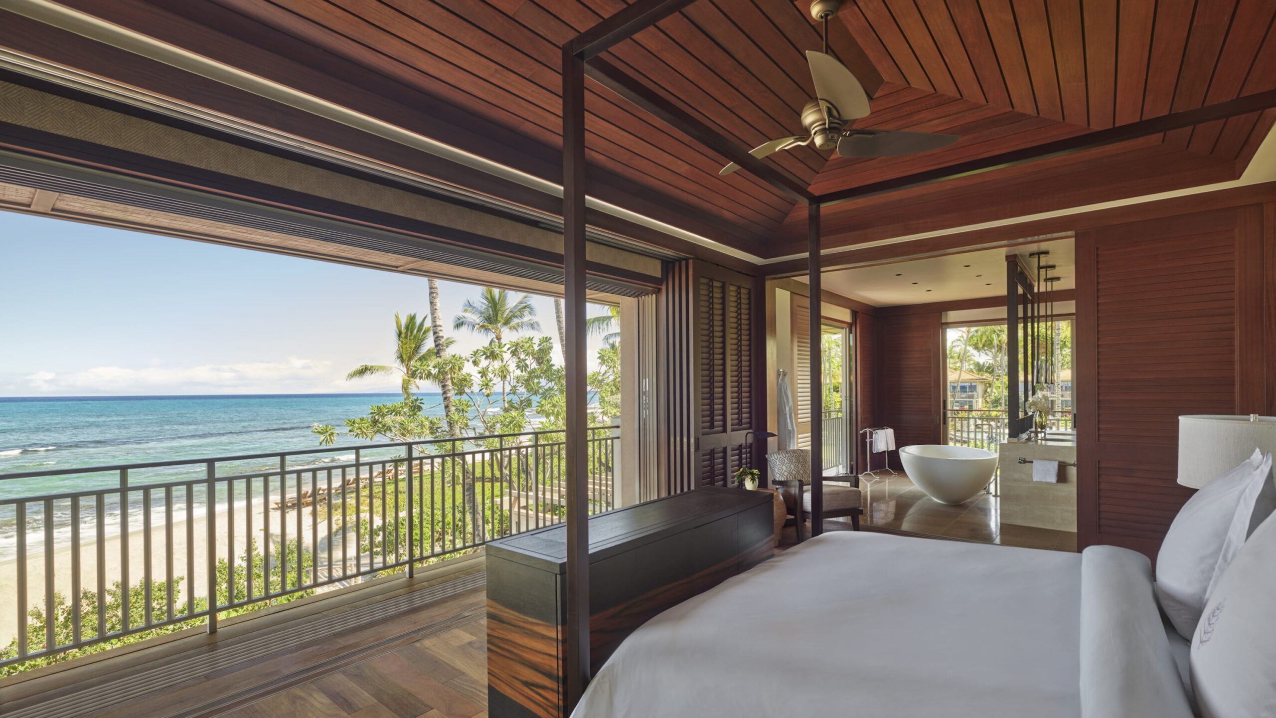 The Kahuwai is the perfect suite for an unforgettable vacation. It is an oceanfront suite featuring two bedrooms, three bathrooms, a spacious living room, and more.