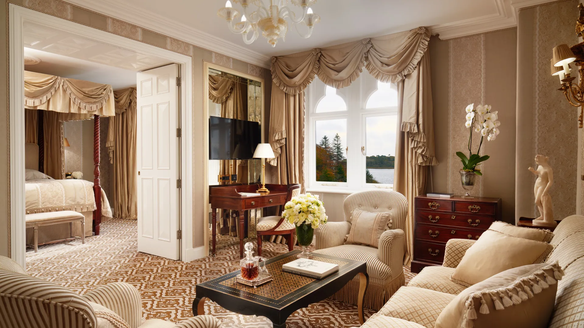 You can reach Ashford Castle in forty minutes by car from Galway and Westport. This makes it a great base to explore Ireland’s West. Visit at the beginning of fall. Plus, you’ll enjoy a magical stay at this castle. You get a 100 USD Food & Beverage Credit, daily breakfast for two, an upgrade on arrival, and early check-in and late check-out (if available) through PrivateUpgrades.
